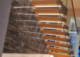 We handled all the hidden metalwork inside the wall to make sure the cantilevered treads had the support they needed. The client had a marble-effect porcelain tiled wall planned, so we worked carefully to ensure everything lined up perfectly and the treads created just the right shadow gaps without putting any stress on those tiles.