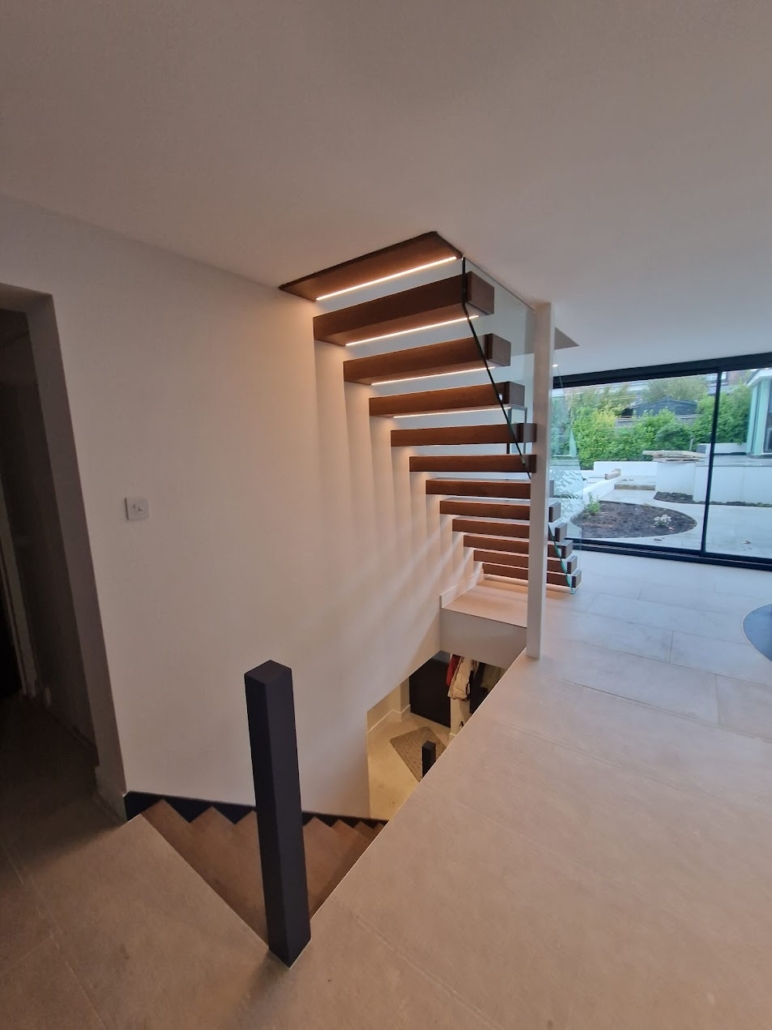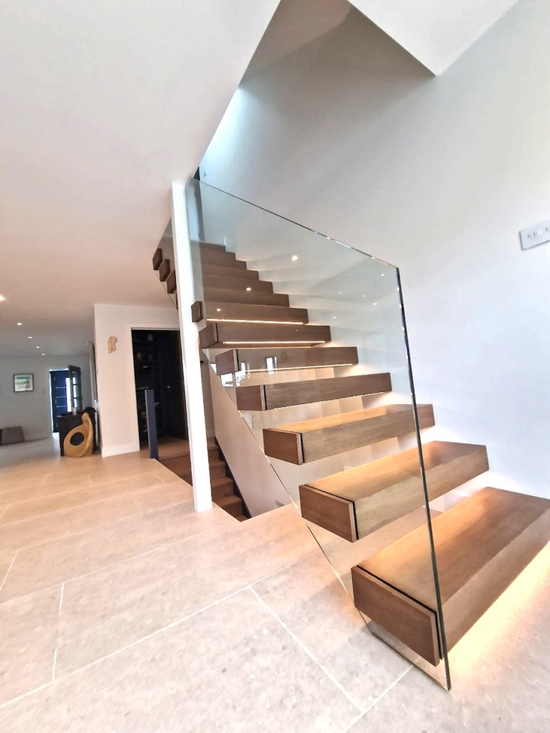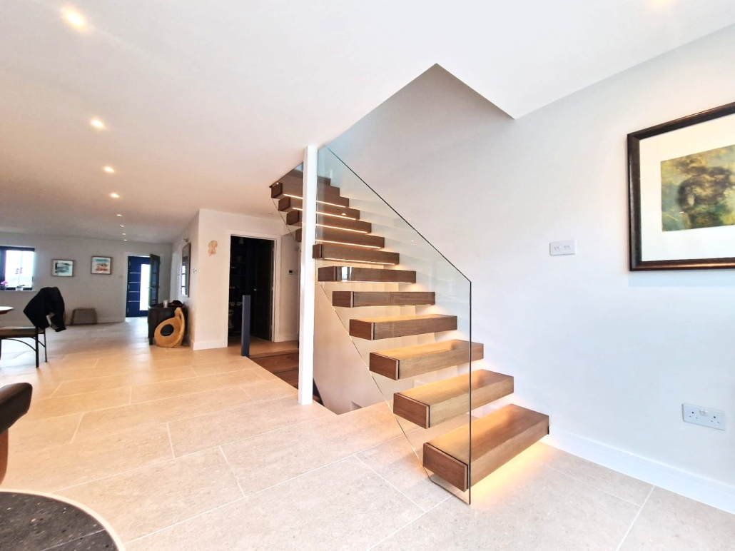 In Saltdean, East Sussex, we got the chance to collaborate with a well-known main contractor to create something pretty special: a floating cantilever staircase that would fit perfectly into a big open-plan space.
